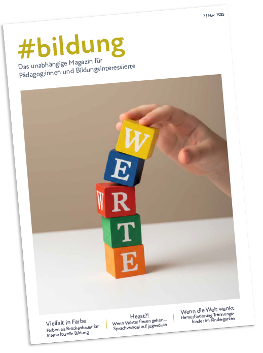 Mit #bildung wollen wir nicht einfach nur medial wirksame Schlagzeilen aufgreifen. Wir wollen Probleme in Kindergarten und Schule nicht vordergründig anprangern. #bildung will Dialog und Verständnis fördern und Lösungswege aufzeigen. Wir möchten Pädagog:innen konkret dabei unterstützen, die täglichen Herausforderungen im pädagogischen Alltag erfolgreich zu bewältigen. Ein paar Anregungen zum Abschalten und Entspannen dürfen da natürlich auch nicht fehlen.